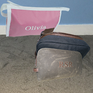 MONOGRAMMED LINEN CROCHET EDGE LINGERIE PURSE